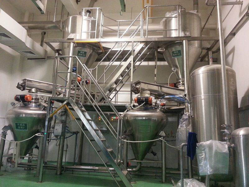 目前高壓密相系統(tǒng)的用途已經(jīng)非常廣泛,針對長距離、大產(chǎn)量、多套使用的輸送場合與其他輸送工藝相比,正壓密相具有低能耗、更穩(wěn)定的優(yōu)勢。該方式常適用于較長的輸送管線距離及精細(xì)的、顆粒狀的、磨蝕性和非磨蝕性的及其它難于輸送的物料,如PVC粉、三元材料、納米碳酸鈣、彈性橡膠、面粉、糖醇、白糖、奶粉、吸水樹脂、鋰電原材料等并且中間可以實現(xiàn)多種工藝的組合,如除鐵、過濾、干燥、保壓、抽真空等。該系統(tǒng)主要由發(fā)送罐、輸送管線、管線增壓器、管道分路閥、末端排氣過濾裝置及智能電控部分等組成。